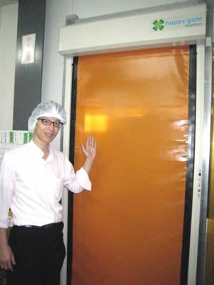 同社は2012年より、仕分場と、製麺、出荷場の仕切りに、happygate門番を導入いただいています。