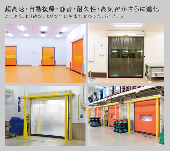 開放時間を短縮。虫・ホコリの侵入を防ぎ、外気の流入による室内の温度や湿度変化を抑え、品質の向上・作業効率・省エネに貢献。