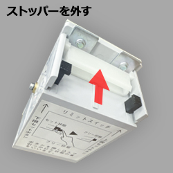2.リミットスイッチのストッパーを外し、セットボタンをフリー状態にします