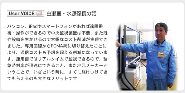 大手メーカーの水道監視システムの2000年問題対策費が高額であったことから、益田市に相談したところ、「メンテナンス対応が良い」と当社を紹介され、1998年に当社製品を初めて採用。