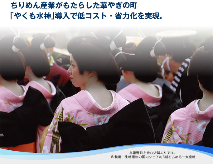 水神を最初に導入されたのは下水道施設、2002年に加悦町にて、インターネットの急速な普及とあわせ、維持管理費が削減できるシステムとして水道課と共に小松電機産業株式会社へデモ機の確認に向かい、他自治体の設置状況などを視察。費用対効果を見極めながら、農集奥滝地区へ水神を導入された。その後は、合併前の野田川町と岩滝町へも導入が進んだ。